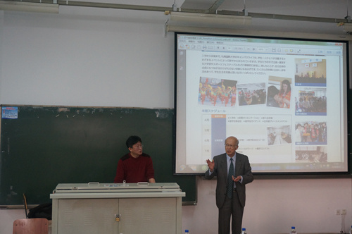 我校与日本札幌国际大学合作项目主要采用2+2形式即两年国内学习两年日本交流学习,本次宣讲会中,泽田隆教授向同学们介绍了学校各个学部特色、对我校学生奖学政策以及丰富多彩的实践活动。