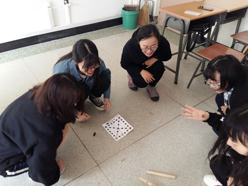 韩国传统游戏体验同样是对韩国传统文化的一次欢乐实践,同学们学习了以尤茨游戏、花图游戏为代表的韩国传统游戏,并分组亲身尝试。体验课上欢声不断,真正实现了寓教于乐的深意。而韩国影视作品赏析课则是一场精神的洗礼,同学们欣赏了朝鲜古典名著改编电影《春香传》,为男女主角突破封建等级制度的爱情所动容。值得一提的是,为了同学们能更加体会文学作品的艺术魅力,朝鲜语系教师并没有选择流行的商业气息浓厚的韩国版本,而是选择了更原汁原味的朝鲜版本。