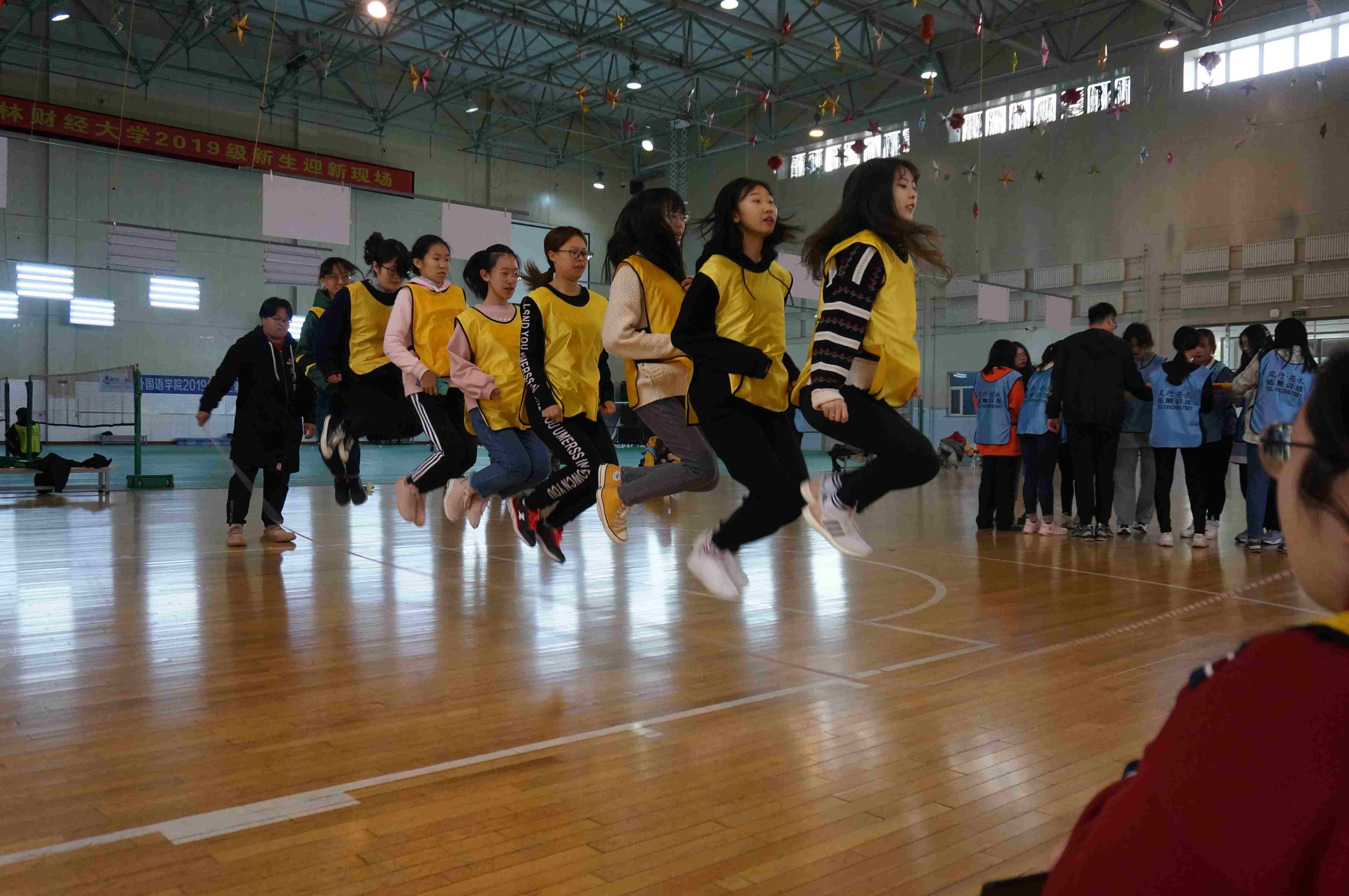 “挑战150”共分为6个小项目:“不倒丛林”、“能量传递”、“同心毯”、“跳大绳”、“激情运球”、“激情节拍”。各组成员共同商讨最佳方案,用时最短的队伍取得胜利。该项目迅速拉近各组成员之间的距离,让同学们明白了团结的重要性。同时也在很大程度上提高了同学们解决问题的能力和合作意识。
