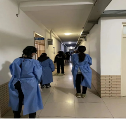 发放自测试剂盒,疏导和维护核酸检测秩序。看似简单的工作,却是对临时党支部同学们的最严峻的考验。这项工作不仅需要敲开所有公寓内宿舍的门,核定寝室人数并准确无误地发放试剂盒,还要叮嘱同学们务必按照自测时间按时完成,如实提交核酸检测结果。尤其是核酸检测工作必须避免人员密集流动,减少人员接触,临时党支部带领志愿者同学严格按照检测要求,每个楼层分三批敲门通知同学下楼进行检测,并时刻提醒同学佩戴好口罩,保持2米安全距离。