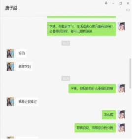 开展一对一的心理咨询活动,做好思想稳定工作,帮助同学们树立战胜疫情的信心。