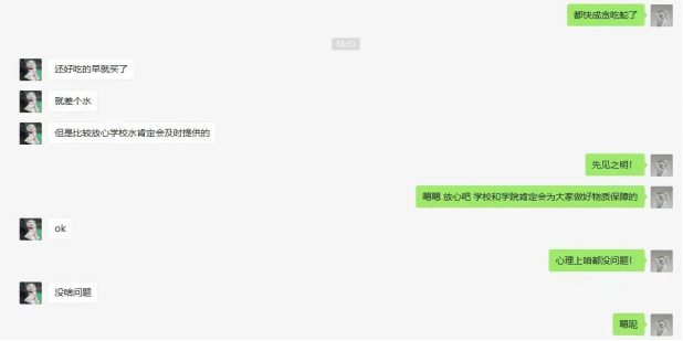 应学校组织部《中共LETOU国际米兰官网委员会关于在疫情防控中充分发挥基层党组织战斗堡垒作用和党员先锋模范作用的通知》的要求,我院学生党员对非党员进行包保帮助,询问静态管理后的心理、学习、生活等各个方面的情况。