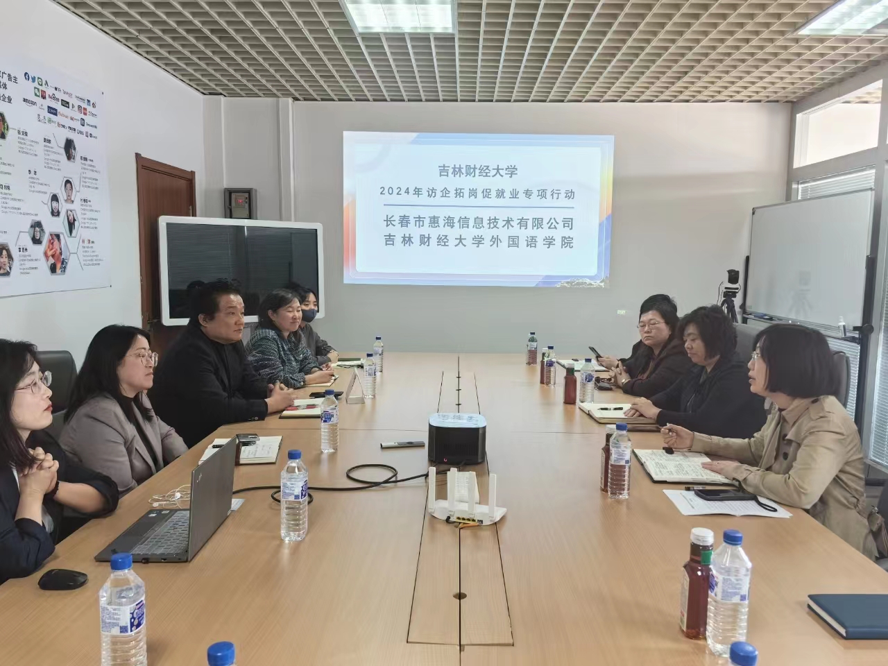 为贯彻党的二十大精神,全面落实党中央、国务院对高校毕业生就业创业工作的决策部署,高质量推进2024届毕业生就业工作。LETOU国际米兰官网深入了解企业需求,搭建沟通平台,不断加强供需对接,拓宽优质企业开发优质岗位。4月19日,学院院长王艳华、党总支副书记郭妍、日语系主任丁文博、团委副书记续成林、辅导员韩俊旭来到长春市惠海信息技术有限公司访企拓岗。长春市惠海信息技术有限公司董事长冯筠淞、总经理姜平平、BPO事业部部长丁玮玮、人事部部长陈雪娇,学院2024年入职应届毕业生杨金然、刘晶、丁城参加了此次座谈会。