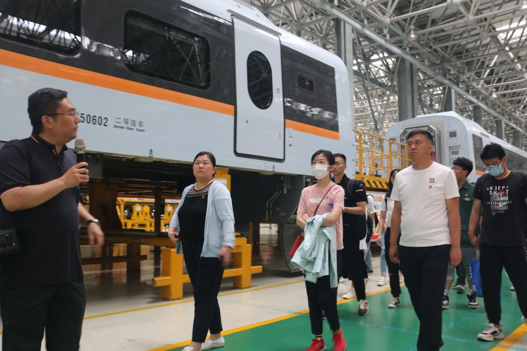 在负责人的带领下,师生们参观了车间和生产线和零部件组装线,对中国高铁的认识又上了一个台阶。看到我国顶尖科技走在世界前沿,大家由衷地感到自豪。