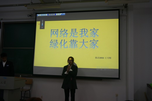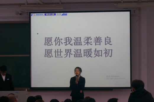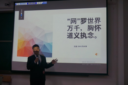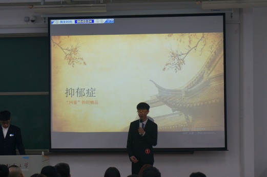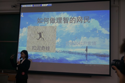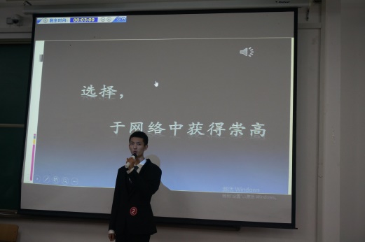 英语系崔国强老师对选手进行点评。崔国强老师首先对大家的演讲能力与表达能力给予了肯定,然后引导大家回顾了选手所提到的网络暴力、校园贷、抑郁症等话题,为大家加深了印象,是大家对这些问题有了更加深刻的思考,最后鼓励大家想这些选手学习,积极表达自己的想法,提高自身表达能力关注身边人、身边事。