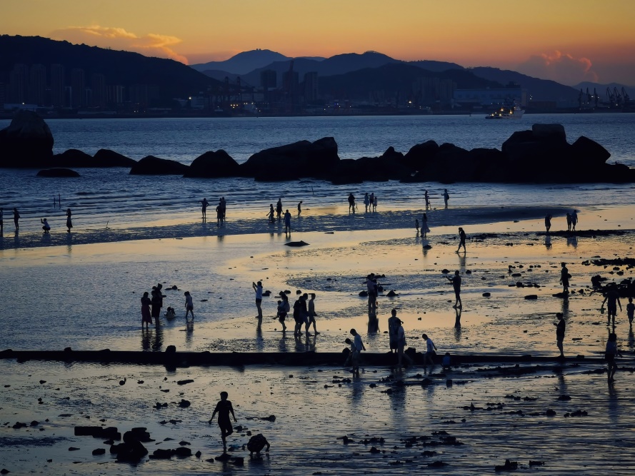 海岸线上初升的日光