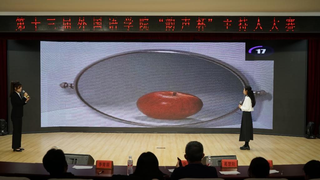 主持人大赛本着发掘和培养具有潜力和综合素质的优秀学生的原则,着力全方位体现外院学子的风采。主题演绎这一环节选手事先分为4组,分为自我介绍视频和现场演讲两部分。他们以独特的视角和极具感染力的方式演讲,内容包括:传承红色精神,“一带一路”和新时代非遗传承等。