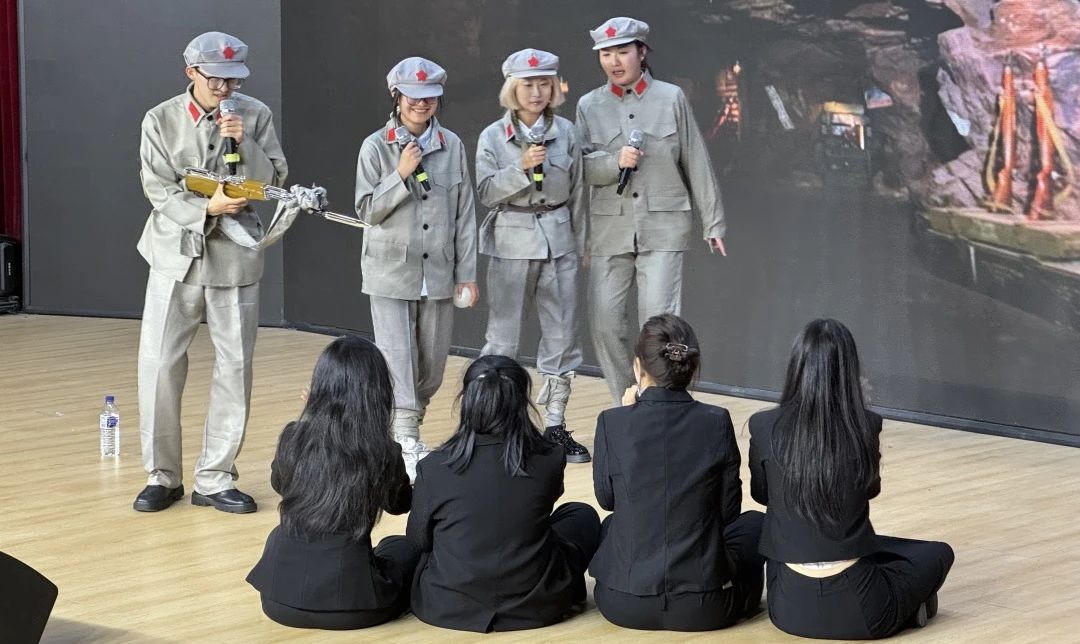 选手们编排了精彩的情景剧,以志愿军和学生两个角度的神奇碰撞,既展现了志愿军战士们曾经的艰辛也不易,也激励在场观众铭记历史,传承抗战精神。情景剧的情节扣人心弦,选手们扮演不同的角色,他们用生动的表现将这一故事演绎的栩栩如生,结束后观众更是报以热烈的掌声。