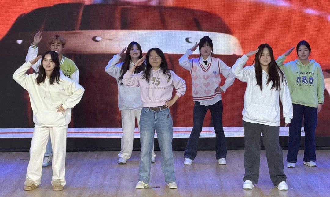 青春朝气的舞蹈献礼环节为大赛增添了一抹亮丽的色彩。伴随着欢快的音乐,社团部成员以充满活力的舞姿展现新时代青年的蓬勃朝气,台下的观众被舞蹈的热情所感染,纷纷拿出手机记录这难忘又欢乐的时刻,随着音乐的节奏摇摆互动,整个现场沉浸在一片欢乐、祥和的氛围之中。