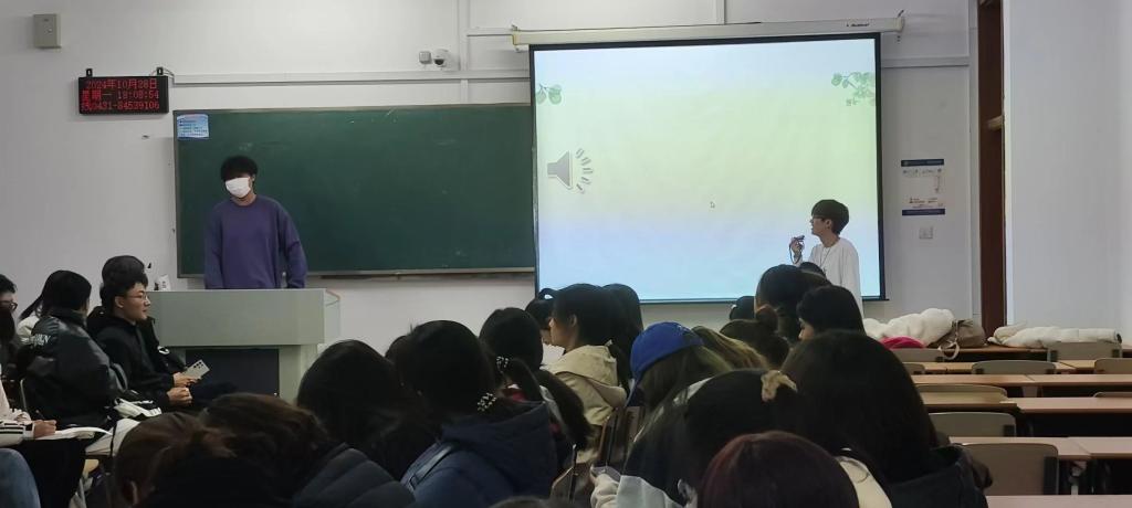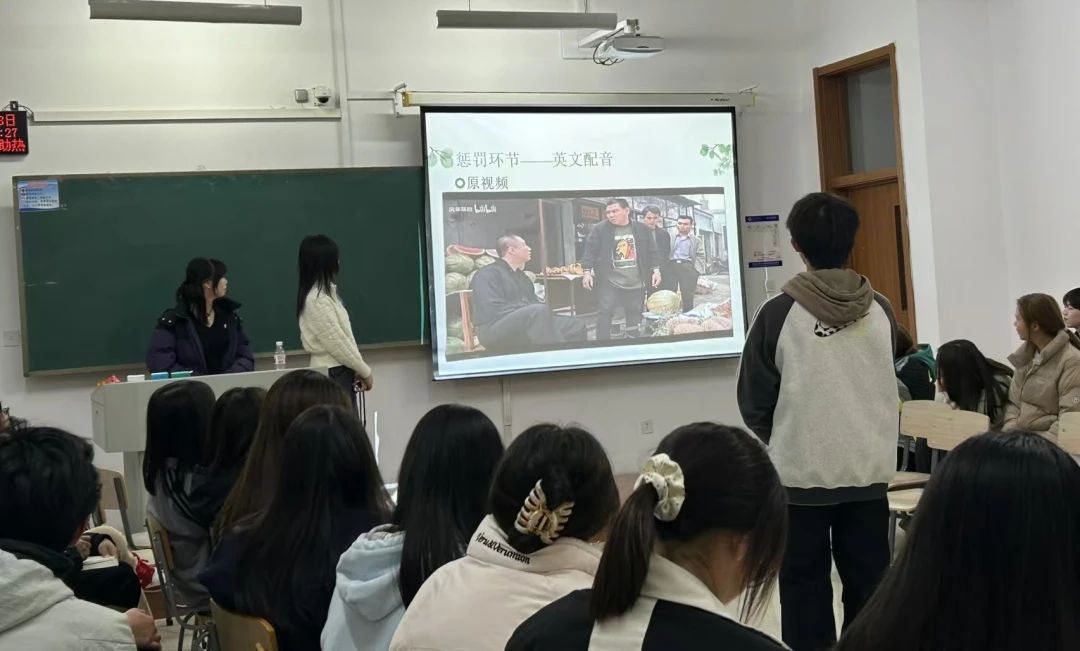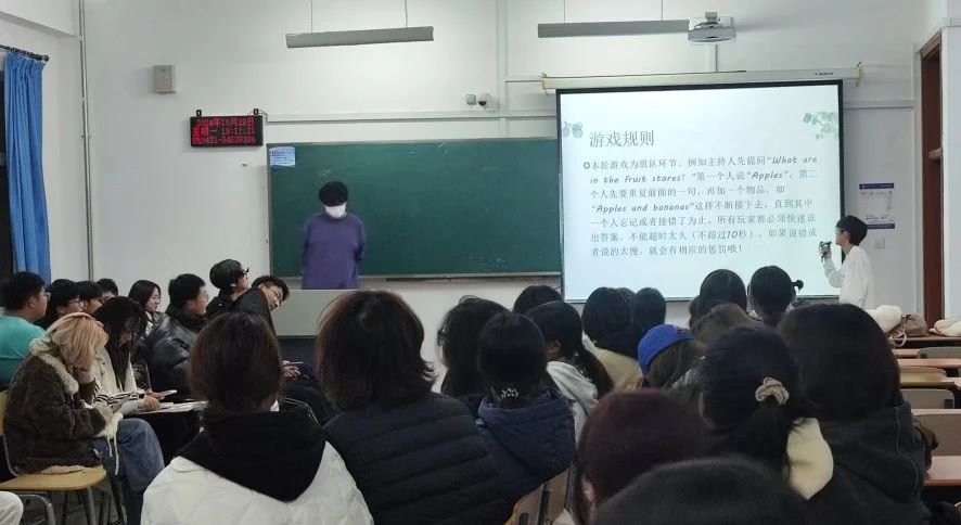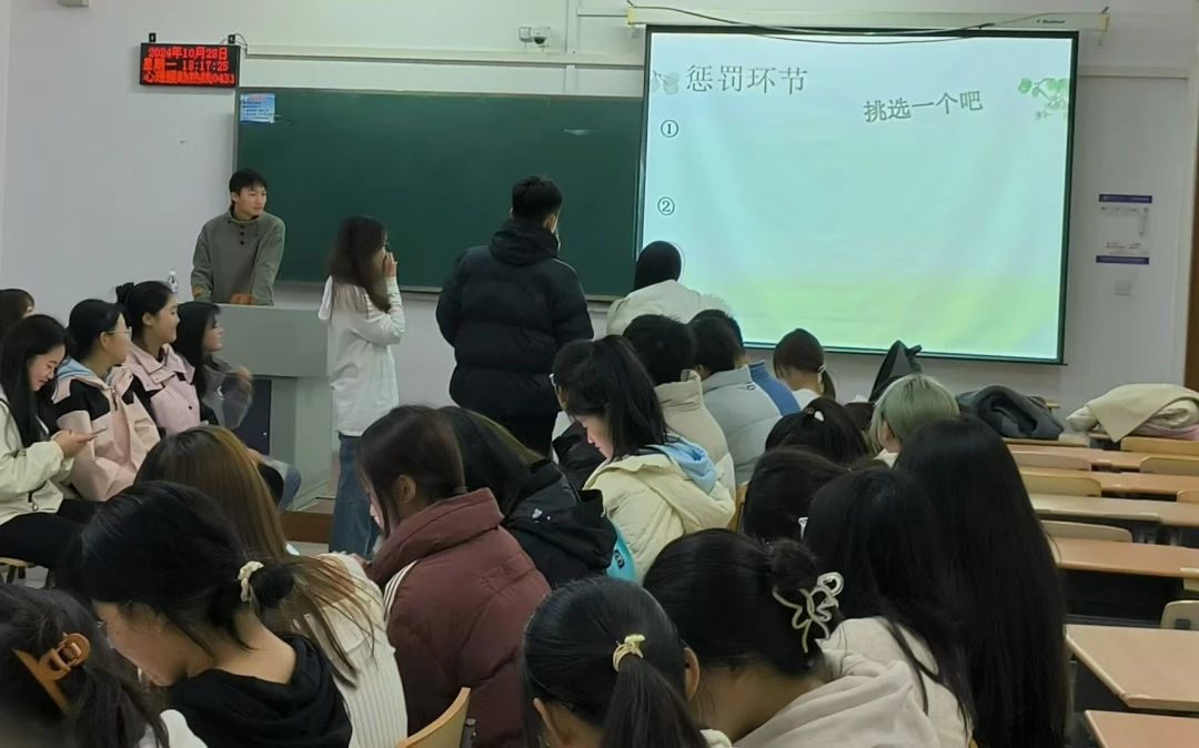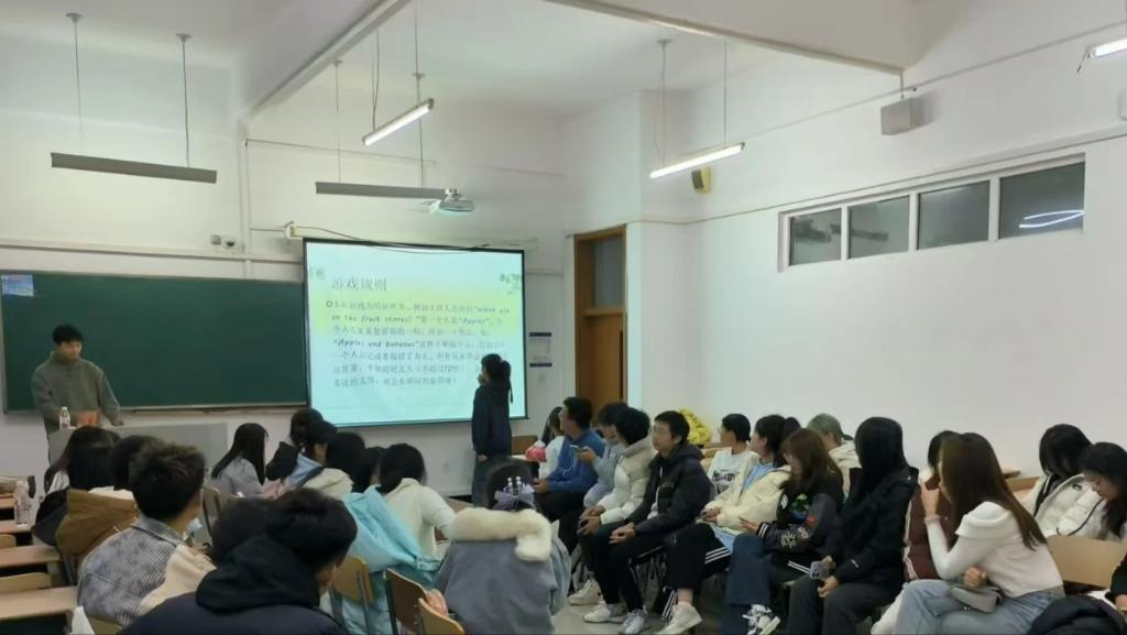 在逛三园环节中,同学们接龙叠词,展现出丰富的词汇储备。失误的“幸运儿”接受英语绕口令的小惩罚,在趣味中提升了发音的准确性和流利度。词尾接龙,字母相连。同学们绞尽脑汁,失误者接受神秘惩罚“视频配音”,这一过程强化了词汇记忆和语法运用能力。你画我猜,英文表述。同学们全程用英语描述和作答,既锻炼了语言表达能力,又增强了彼此之间的默契,为口语交流能力的提升提供了良好的契机。科普视频,轻松学习。有趣而生动的视频让同学们在轻松的氛围中学习新知识,拓宽视野,丰富了专业知识储备。