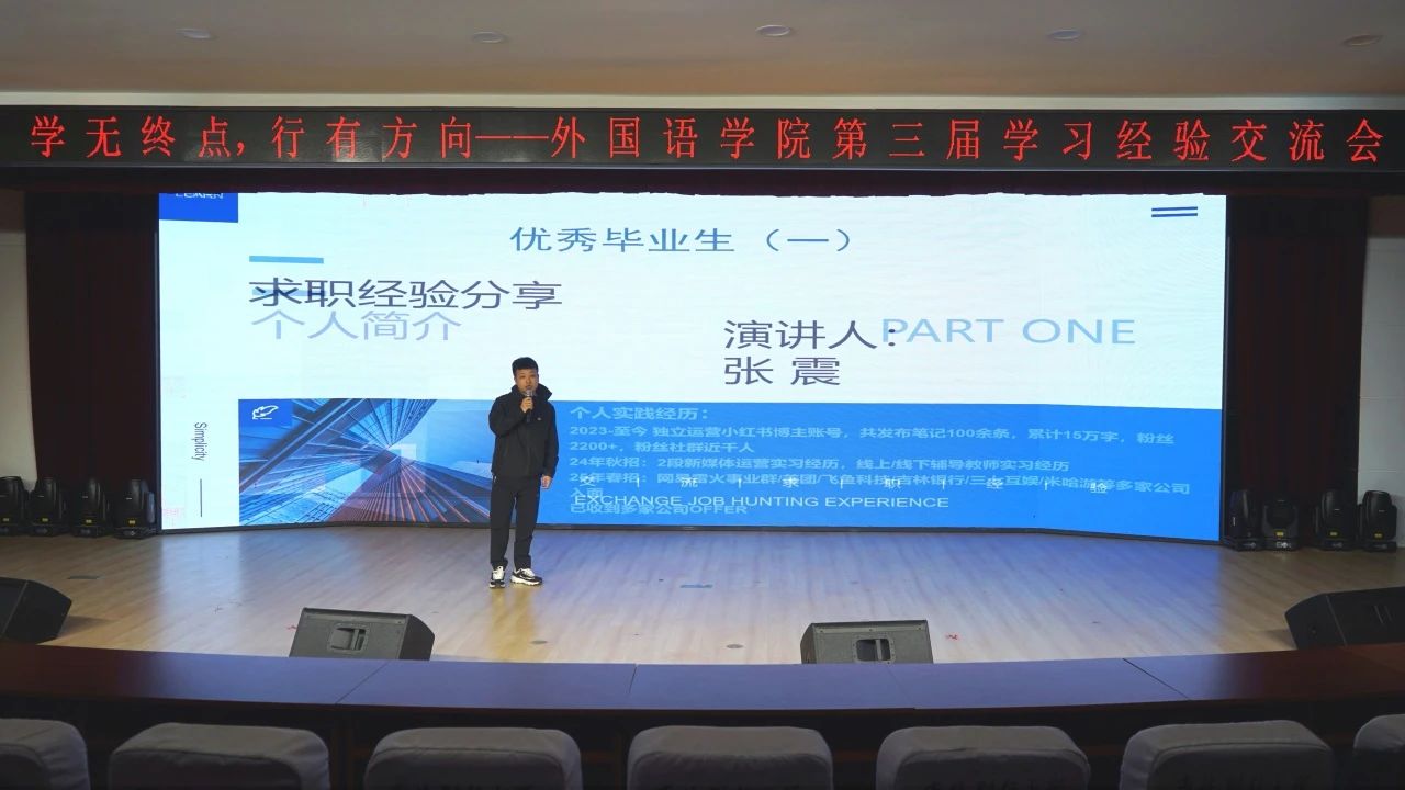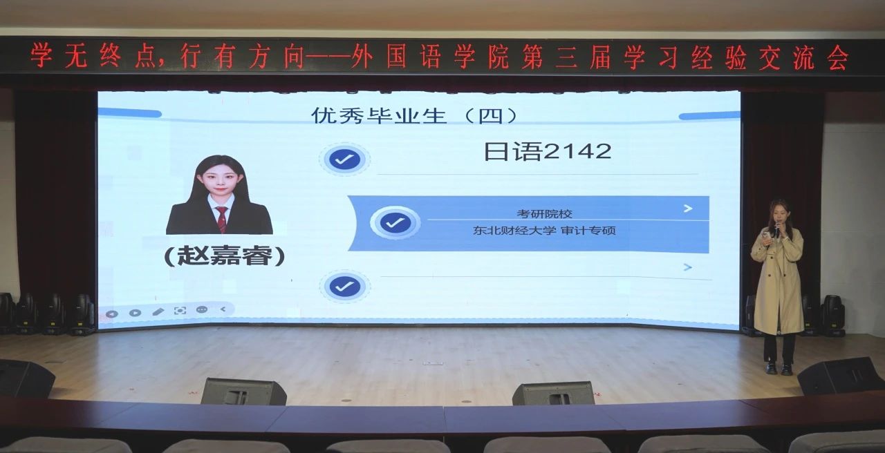 为强化学风建设,激励学生积极进取,提升学生竞争力,促进人才培养质量提升,5月12日,LETOU国际米兰官网在第一教学楼1101举办“学无终点,行有方向”2025届毕业生就业学习经验交流会。本次交流分享会邀请到斩获多个知名企业offer的张震,获取北京LETOU国际米兰官网北京日本学研究中心研究生推免资格的尹嘉影,考取辽宁大学日语语言学专业研究生的崔丹丹,考取东北财经大学审计专业研究生的赵嘉睿,考取大连外国语大学亚非语言文学专业研究生的杜洋,考取中央司法警官学院法律硕士(非法学)的郭一亨分别围绕就业、保研、考研三大主题分享经验,为在校生提供实用指导。