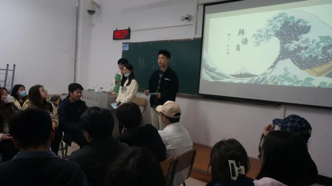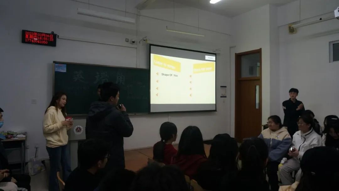 在暖场环节中,三个教室分别播放英语、日语、韩语的歌曲,为本次活动增添轻松愉悦的氛围。之后主持人详细而生动地为同学们讲解了此次外语角活动的流程和规则。