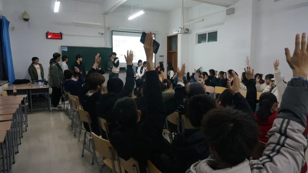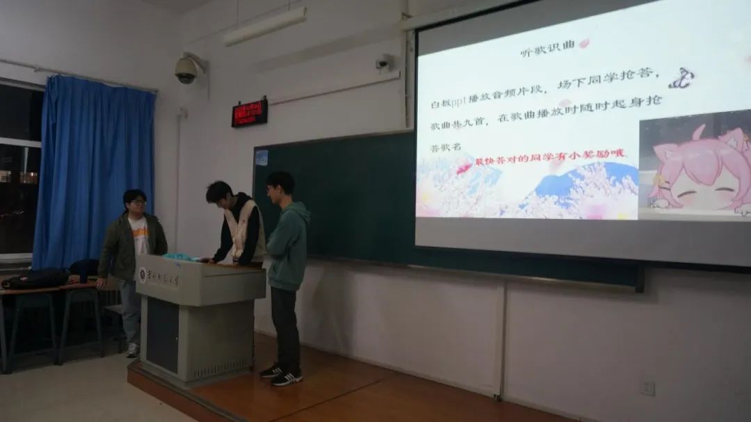 随后,现场进行了听歌识曲环节、配音环节、外语数字拍 7环节和知识竞赛环节。现场活动开始后,在歌曲前奏刚刚响起几秒,便有数名同学纷纷举手进行抢答。之后参与配音的同学通过有趣的电影情节和精湛的外语口语能力,为同学们带来一场场精彩的配音表演。在外语数字拍7环节中出现失误的同学们上台展示各自的才艺;在知识竞赛环节中,同学们积极思考,踊跃抢答,同时针对各类题目展开了激烈的讨论,共同交流分享自己的想法。