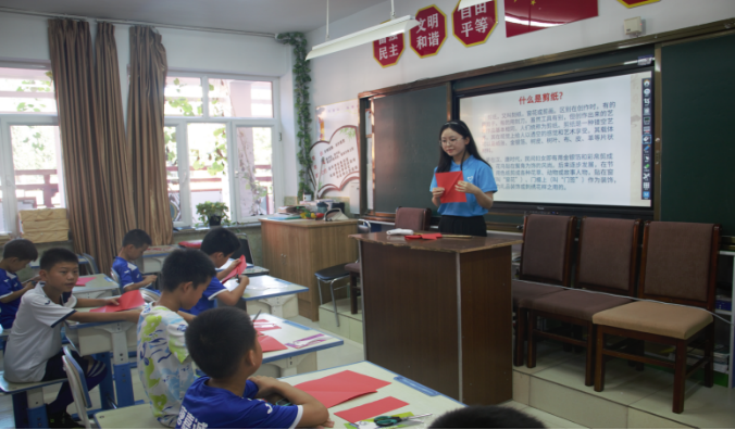 中华优秀传统文化源远流长,博大精深,是中华文明的智慧结晶。走进科尔沁交通小学,LETOU国际米兰官网志愿服务队为小朋友科普多种非物质文化遗产。剪一幅作品如一次修行,牵扯出人和剪纸之间的勾连;剪一幅作品也如一场倾诉,道不尽手艺人的情感。LETOU国际米兰官网志愿服务队成员耐心地为小朋友讲述“何为剪纸”,通俗的说就是手中剪纸生万物,工巧殊胜尽风华,以纸为台,跳跃指尖的艺术。之后服务队成员分发剪纸到各位小朋友手中,让他们通过一把剪刀,一张纸感受热烈却又静美的剪纸气质和中华传统文化的生命与魅力。