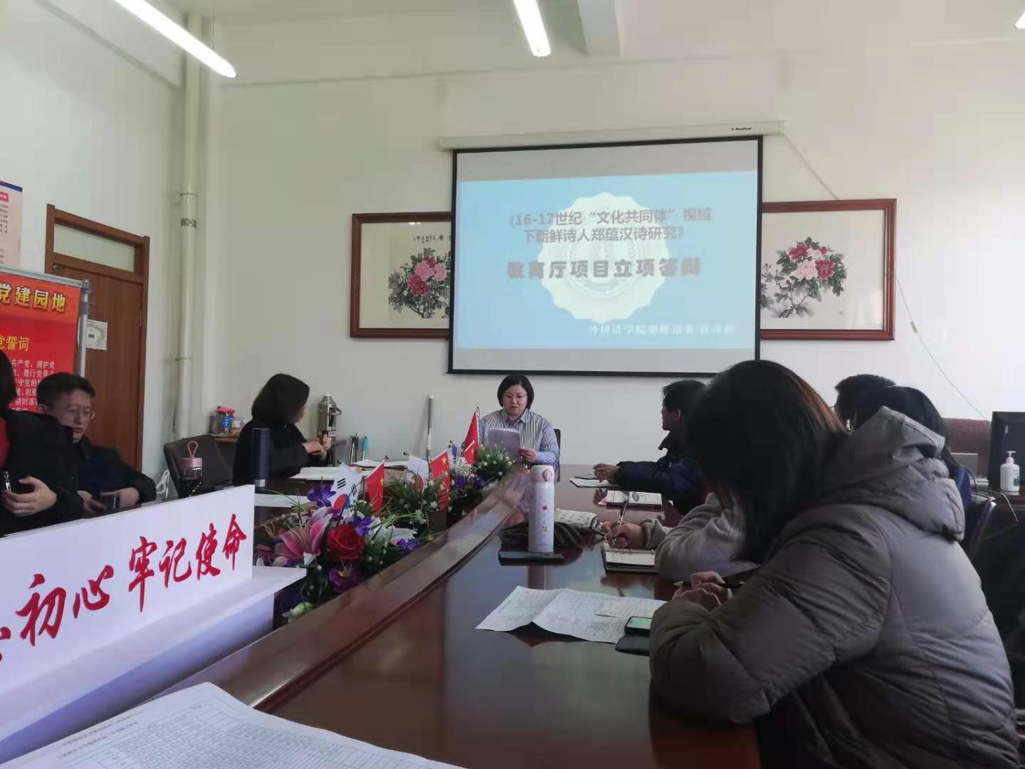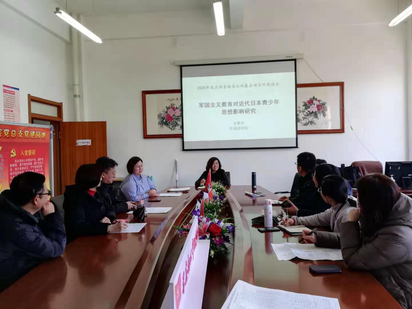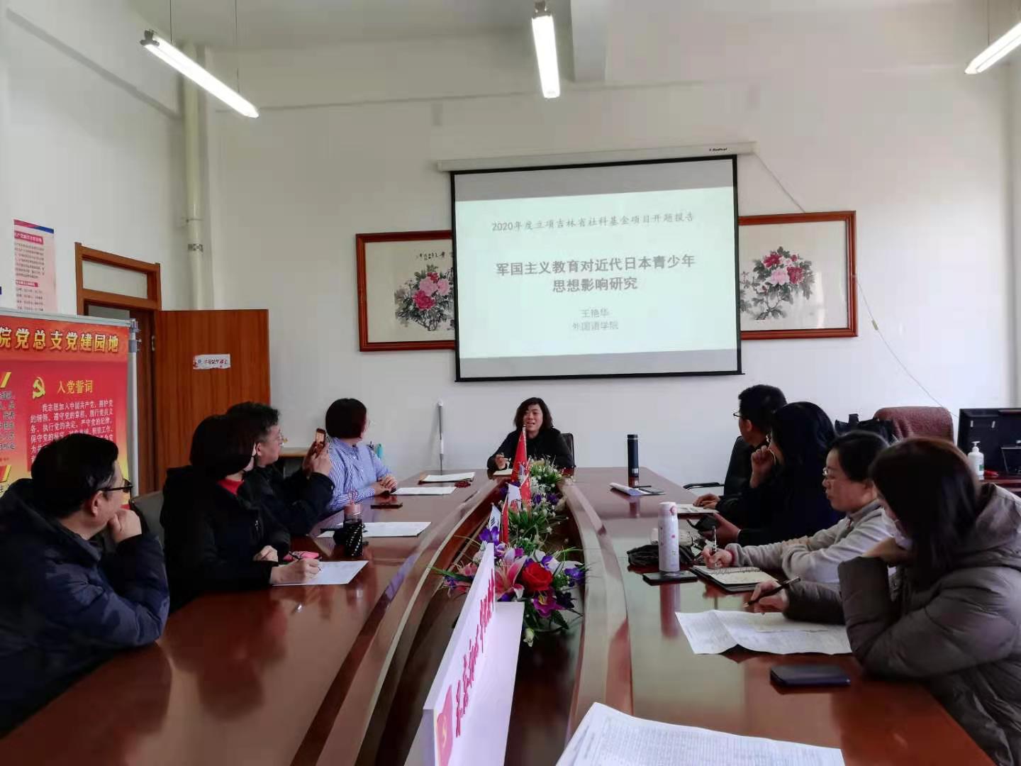 接下来,王艳华教授就本人主持的省社科基金项目《军国主义教育对近代日本青少年思想影响研究》、杜彦松老师就本人主持的省教育厅社科研究课题《16-17世纪“文化共同体”视域下朝鲜诗人郑蕴汉诗研究》、刘洋老师就本人主持的省社科项目《乡村振兴战略下吉林省农村产业融合发展路径研究——以日本农业六次产业化为借鉴》,分别从研究背景、研究内容、研究计划以及预期成果等方面进行了详细讲述,与会的院学术委员会委员及各项目组成员均进行了热烈探讨和交流,