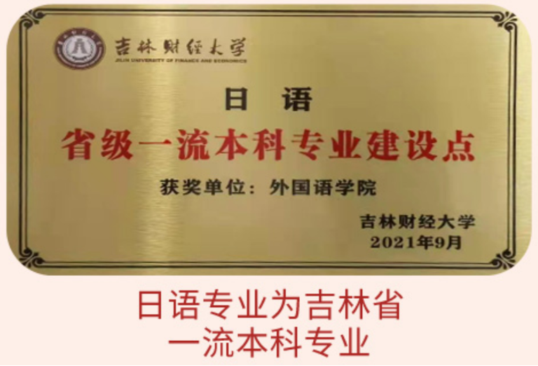 日语专业(经贸方向),成立于1997年,先后获评吉林省高等学校特色专业建设点、国家级特色专业、吉林省高校特色高水平专业A类。本专业主要培养能在中外合资企业、日本独资企业、外资金融机构、外经贸系统、驻外机构、政府机关、大专院校、科研院所等部门从事经贸实务、管理、翻译、教学、科研等工作,精通日、英双语,又掌握经贸知识的应用型、复合型、国际化的外语专门人才。本专业学生入学后零起点学习日语,同时继续学习英语,并开设实用型经贸类专业课。