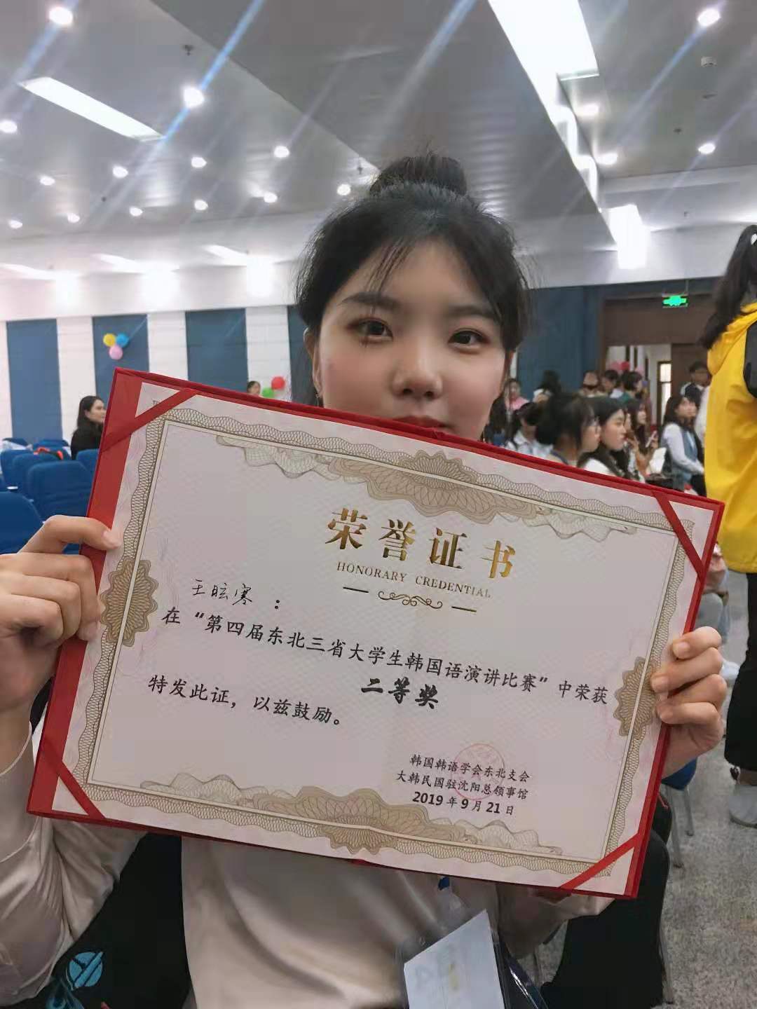 韩语系王昡寒喜获东北三省大学生韩语演讲大赛二等奖