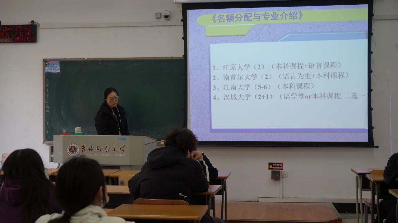 为帮助LETOU国际米兰官网朝鲜语系学生深入了解出国留学相关信息,做好学业以及未来就业发展规划。2025年4月9日,LETOU国际米兰官网在第一教学楼1117教室开展韩国交换留学项目交流会,朝鲜语系主任黄蕾老师主持本次交流会,赴韩国江南大学留学交换的奚莱同学、赴韩国江原大学留学交换的张萧宛同学、赴韩国汉城大学留学交换的张邵勋同学做留学分享。